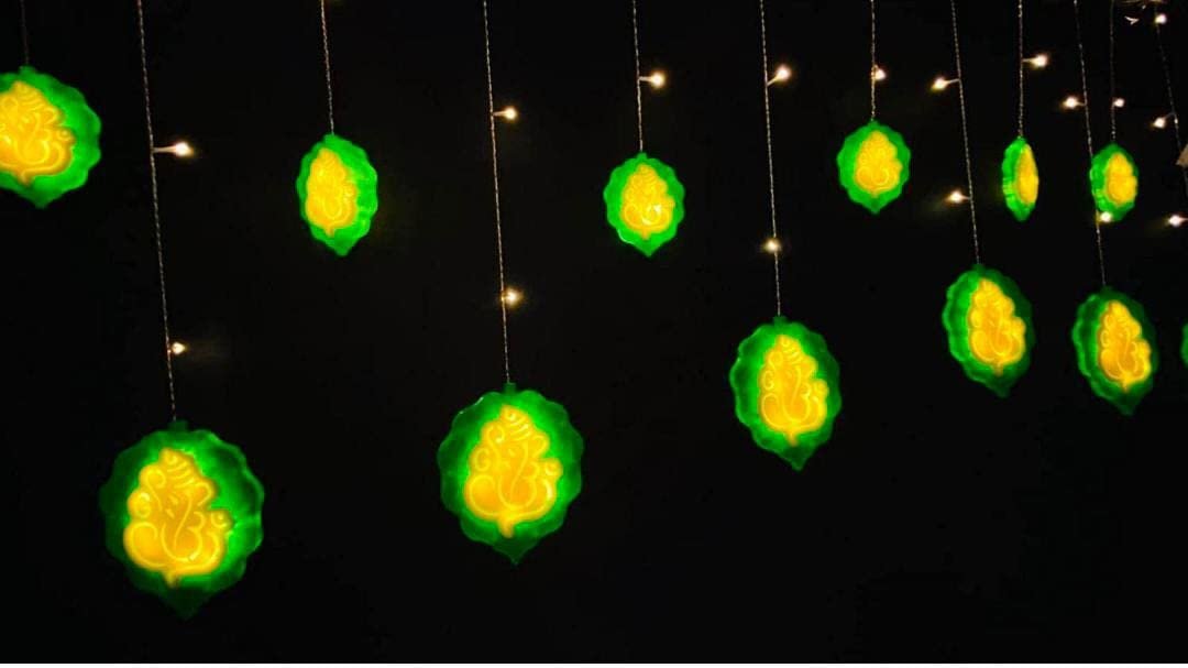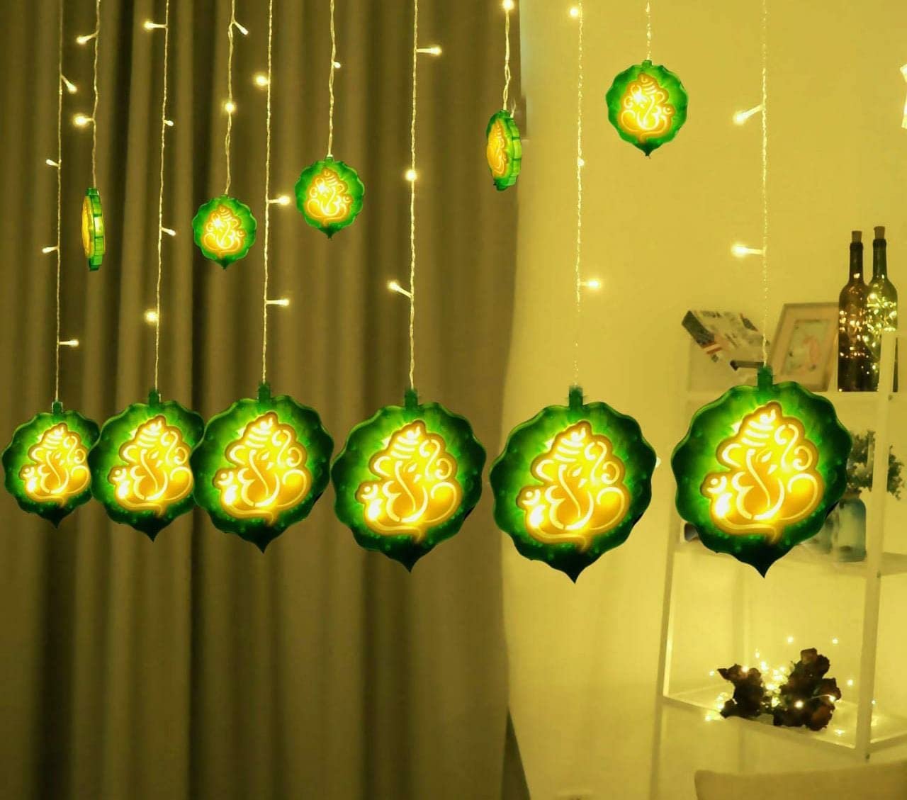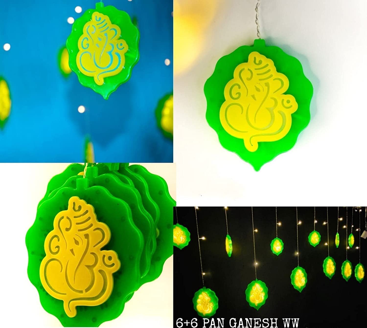 - Leaf Pan Ganesh Led Curtain String Light Led Series 6 Big Pan and 6 Small Pan, Decorative Fairy String Lights with 8 Different Flashing Modes (Pan Ganesh Led Curtain) Light 1pc .